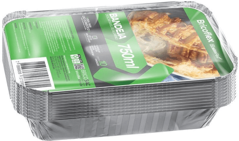 BANDEJA DE ALUMINIO DESCARTAVEL 750ML COM 10 UNIDADES BRICOFLEX