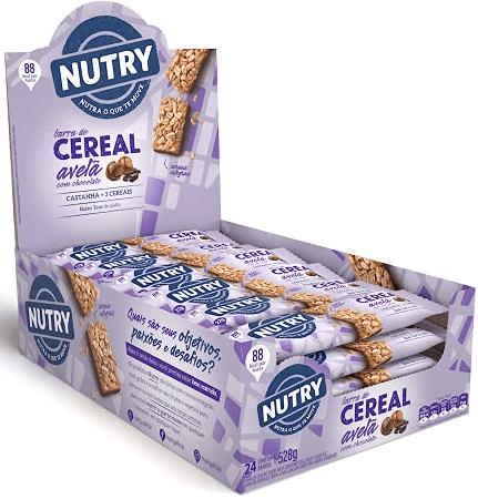 BARRA DE CEREAIS SABOR AVELA COM COBERTURA DE CHOCOLATE NUTRY