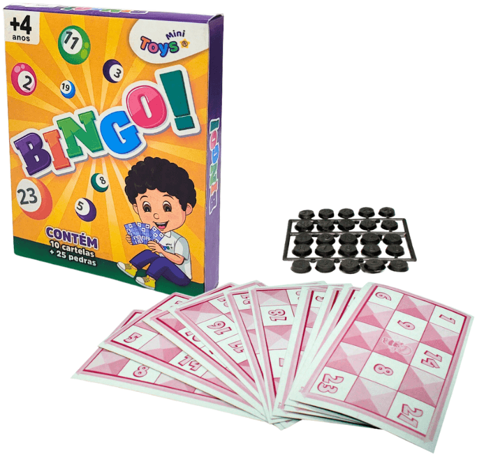 CAIXA BINGO GRUPO TOYS CONTEM: 10 CARTELAS + 25 PEDRAS + 1 SACO PLASTICO