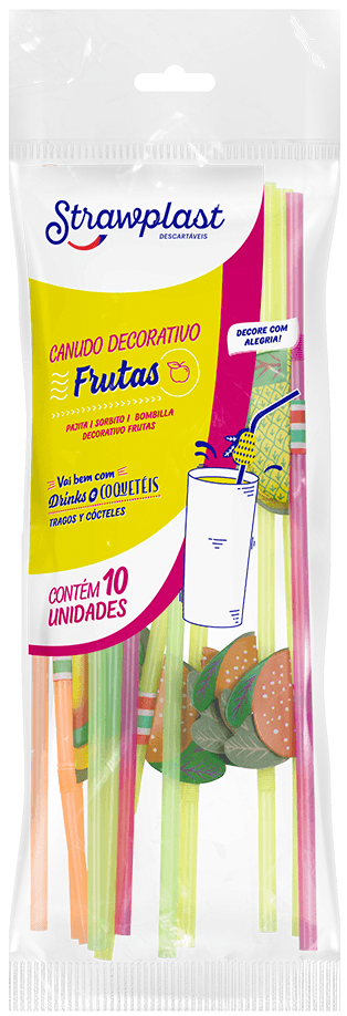 CANUDO DECORATIVO FRUTAS COM 10 UNIDADES STRAWPLAST