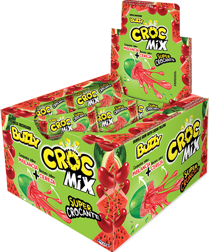 CHICLE BUZZY CROC C/40 UNIDADES MELANCIA E CEREJA RICLAN