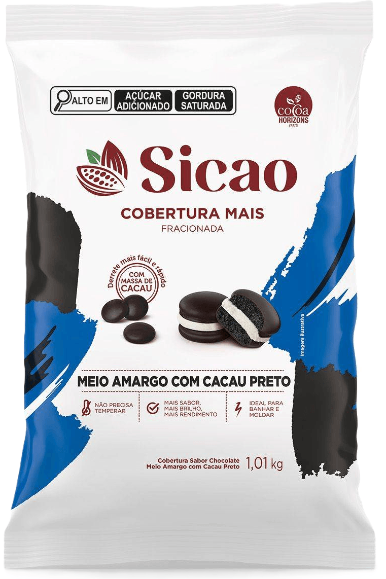 CHOCOLATE COBERTURA MAIS MEIO AMARGO COM CACAU PRETO 1,01KG SICAO