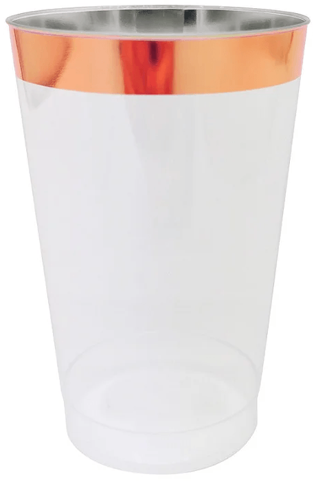 COPO DESCARTAVEL LUXO COM BORDA ROSE GOLD 340ML COM 4 UNIDADES MAKE+