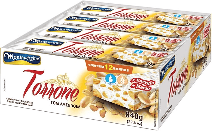DOCE TORRONE COM AMENDOIM CAIXA 840G CONTEM 12 BARRAS MONTEVERGINE