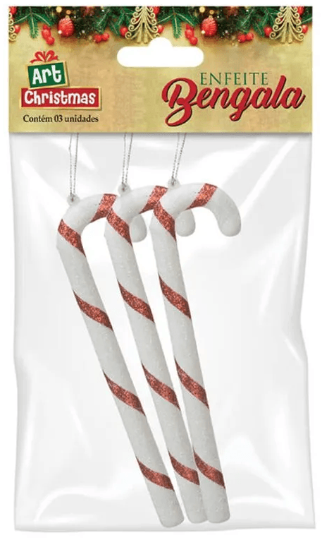 ENFEITE NATALINO BENGALA 17X4,5CM COM 3 UNIDADES ZEIN