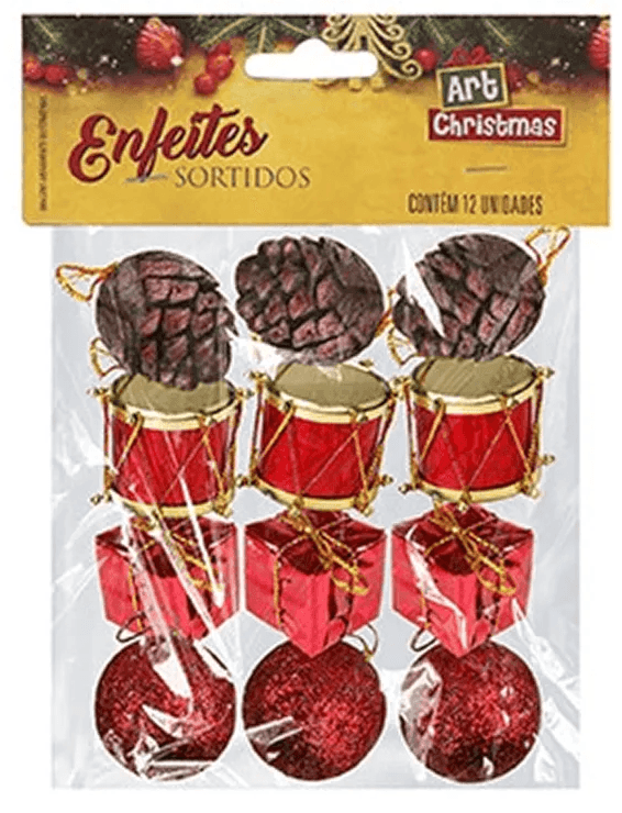 ENFEITE NATALINO SORTIDO COM 12 UNIDADES ZEIN