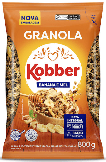 GRANOLA BANANA E MEL 800G KOBBER CEREAIS INTEGRAIS