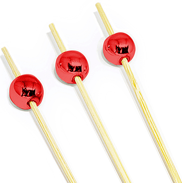 PALITO DE BAMBU PARA PETISCO COM ENFEITE VERMELHO 12CM COM 20 UNIDADES SILVER FESTAS