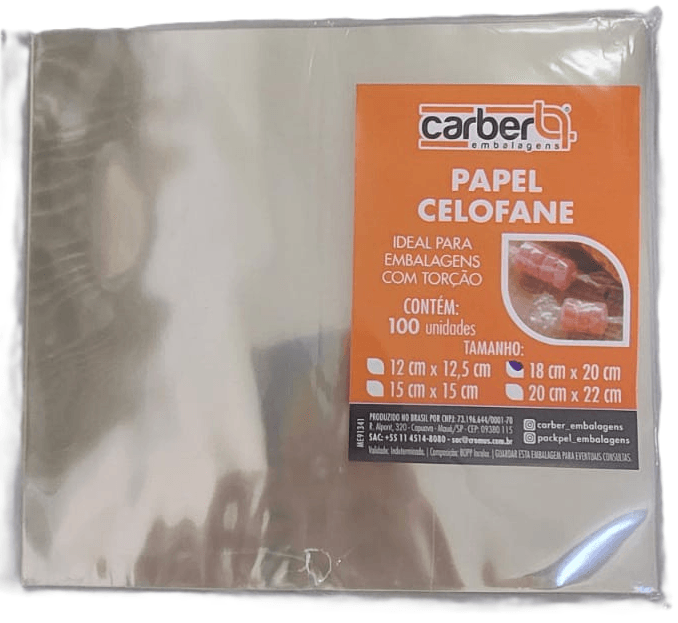 PAPEL CELOFANE IDEAL PARA TORCAO 18X20CM COM 100 UNIDADES CARBER