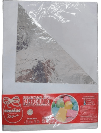 PAPEL CHUMBO PRATA 43.5X59CM COM 3 UNIDADES CROMUS EMBALAGEM TRADICIONAL PARA OVO DE PASCOA E CHOCOLATES.