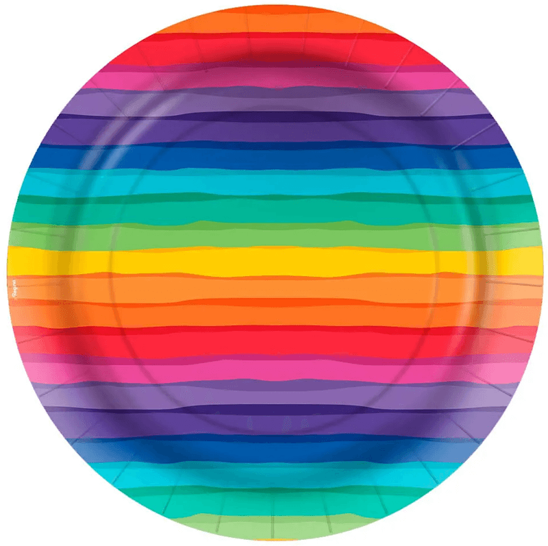 PRATO DE PAPEL REDONDO 18CM ARCO IRIS COM 8 UNIDADES REGINA