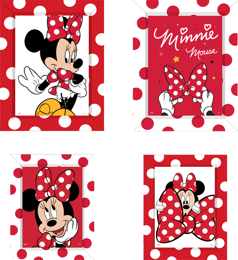 QUADRO COM MOLDURA DE PAPEL MINNIE MOUSE COM 4 UNIDADES REGINA