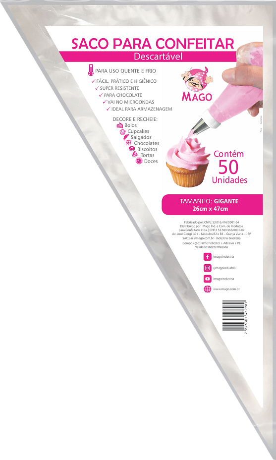 SACO CONFEITAR DESCARTAVEL COM 50 UNIDADES GIGANTE MAGO