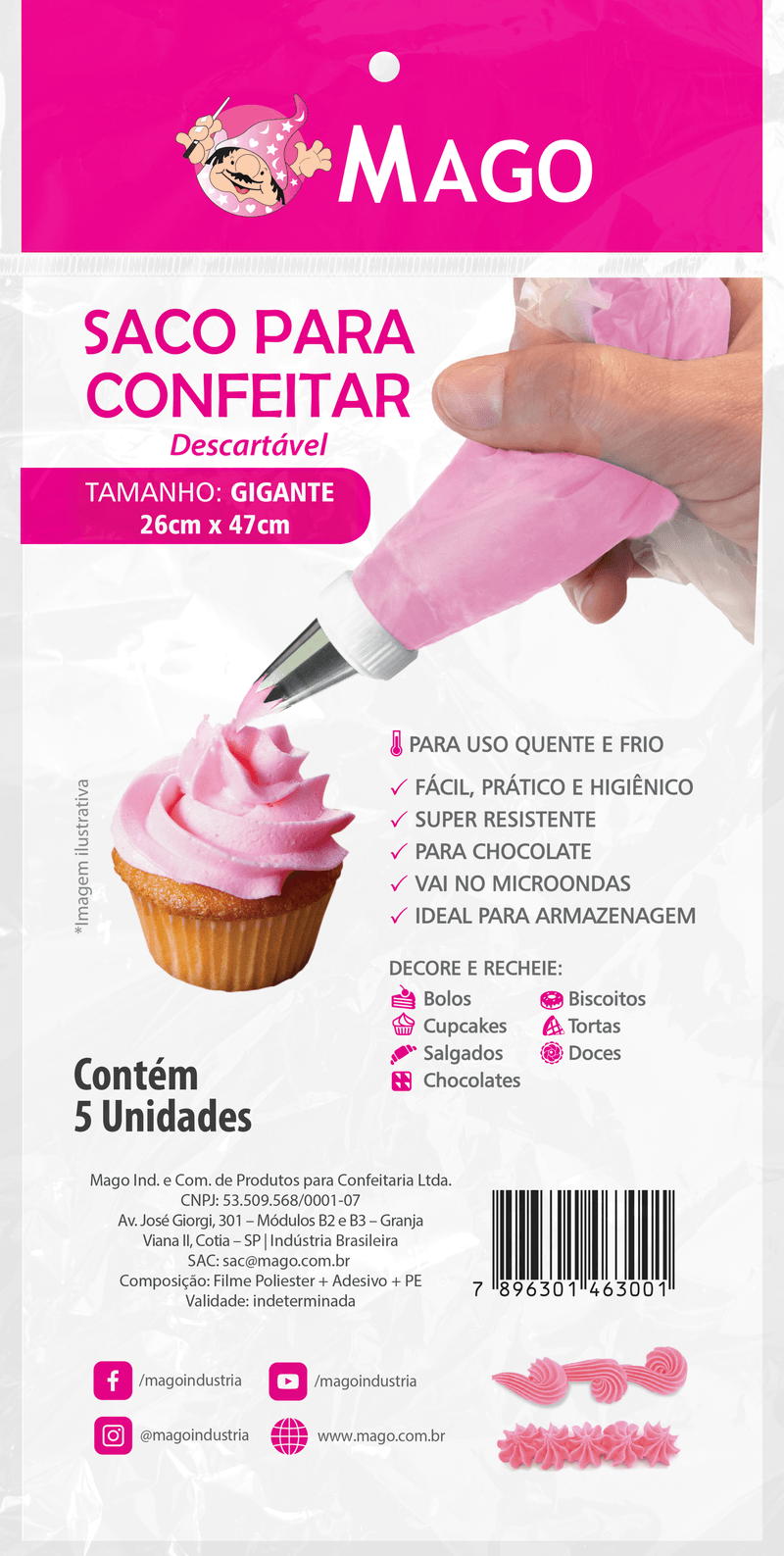 SACO PARA CONFEITAR DESCARTAVEL COM 5 UNIDADES GIGANTE MAGO