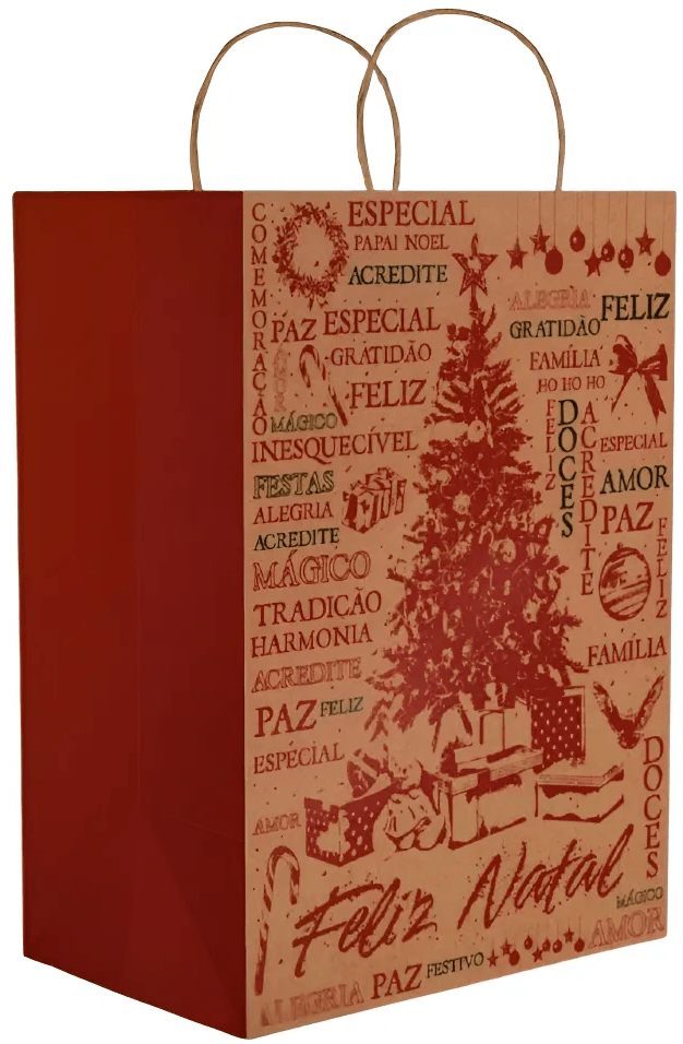 SACOLA DE PAPEL 25X18X12CM KRAFT NATAL ESSENCIA IDEIA