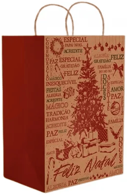 SACOLA DE PAPEL 34X25X12CM KRAFT NATAL ESSENCIA IDEIA