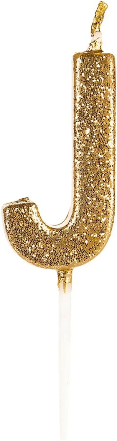 VELA PEQUENA COM GLITTER DOURADO LETRA J SILVER FESTAS