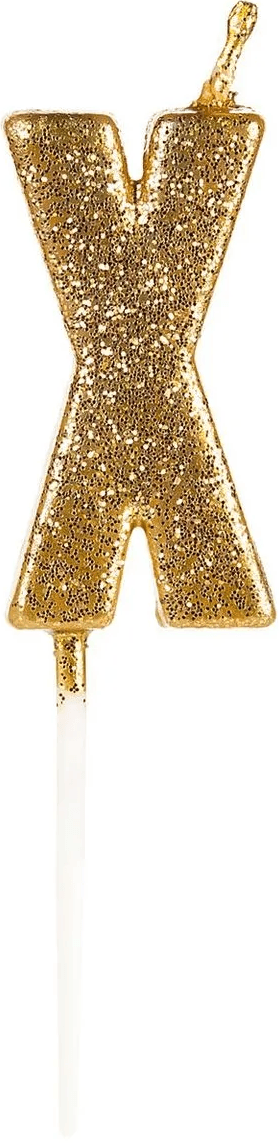 VELA PEQUENA COM GLITTER DOURADO LETRA X SILVER FESTAS